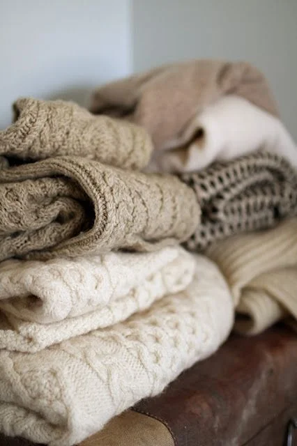 Ég hef verið nokkuð föst í jarðlitum um nokkurt skeið, bæði heima fyrir og í klæðnaði. Það er eitthvað svo hlýlegur og rómantískur blær yfir kremuðu og gráu litunum sem hafa verið vinsælir nú upp á síðkastið og nú þegar haustið er að nálgast langar mig að prjóna stóra og víða peysu í jarðlit með brúnum tón. Set inn hér nokkrar myndir af þeirri litapallettu sem ég hef í huga, en ég er ekki komin með hugmynd að neinu sniði.